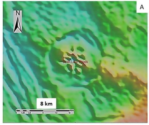 Круглая аэромагнитная аномалия диаметром 10 км демонстрирует центральный магнитный максимум с признаками радиальных складок. Данные дистанционного зондирования, включая спутниковые снимки, свидетельствуют о том, что это обнажение может быть нетипично хаотично сложено и разломано. Выявлены особенности, указывающие на сложную структуру, включая размагниченную внешнюю кольцевую зону и центральный магнитный максимум.