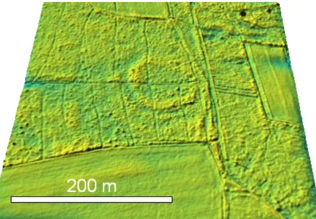 Pussensheim structure, Digital Terrain Model DGM 1, surface map; oblique view (Ernstson et al., 2022).